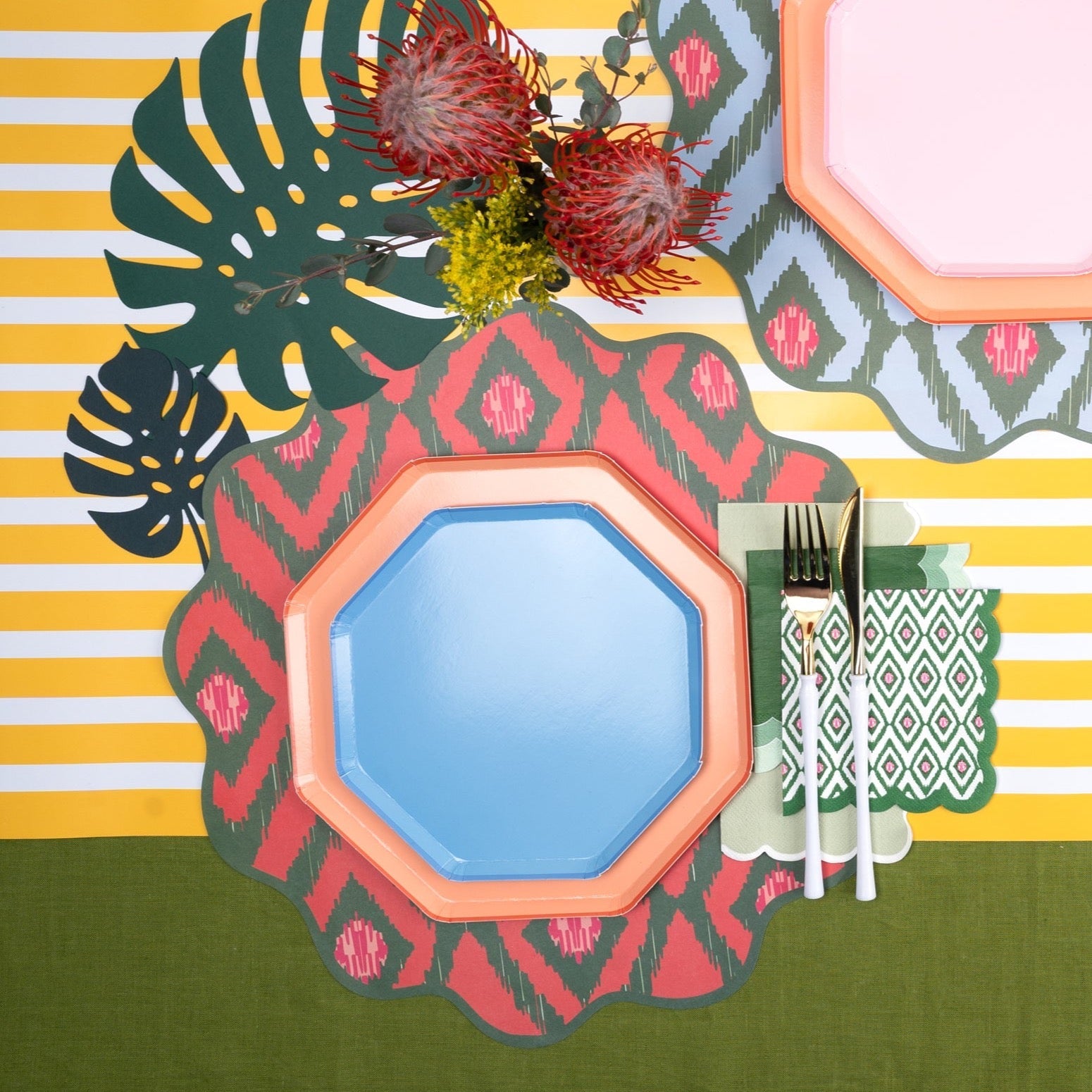 Elevate your next gathering with our Bold Ikat Beverage Napkins! These bright and bold napkins feature a stylish ikat design that will add a pop of color to your table. Perfect for any occasion, these napkins are sure to impress your guests. Upgrade your napkin game today!