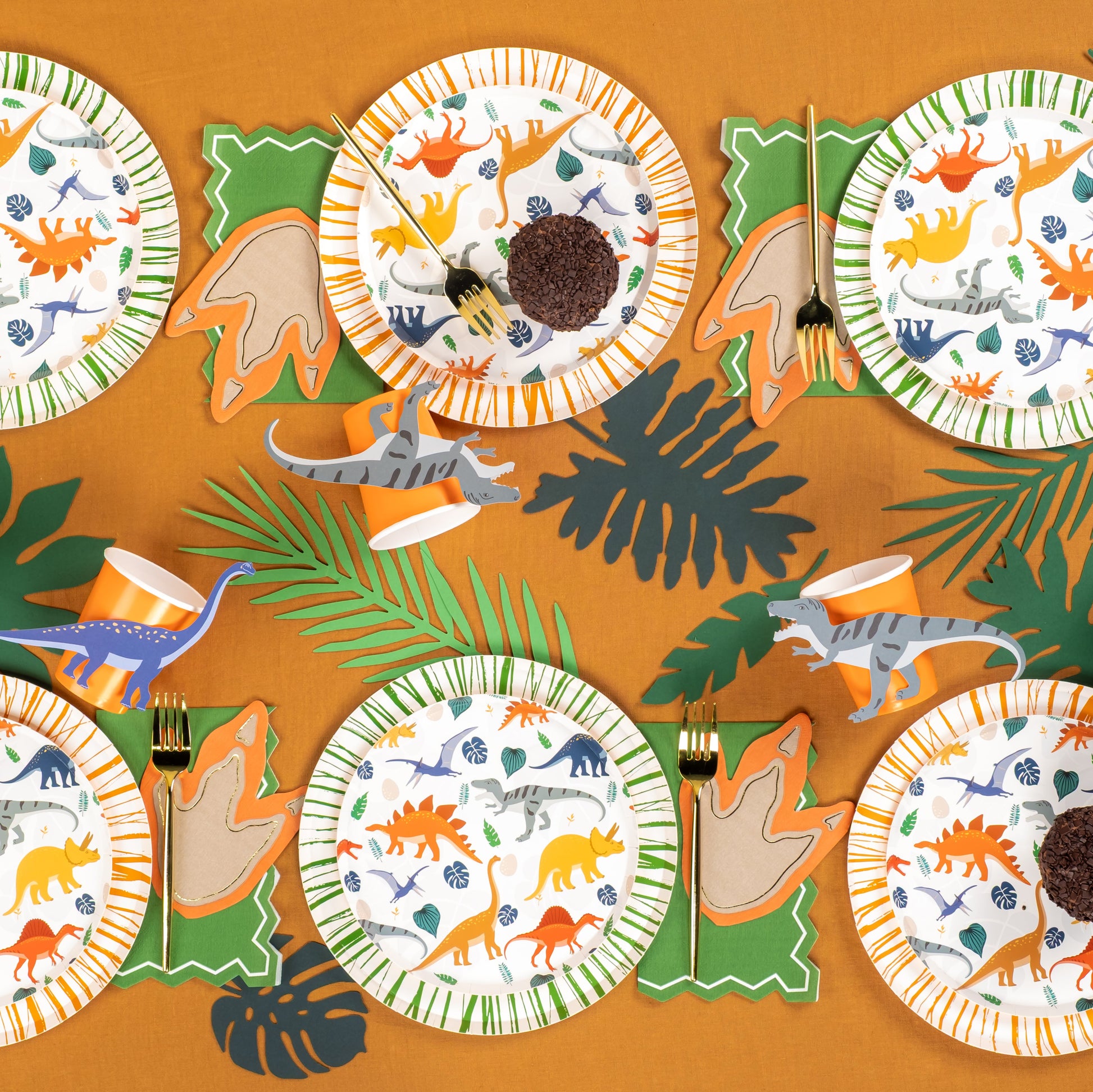 Add some prehistoric sparkle to your party table — shop now and let these golden dino tracks lead the way to fun!