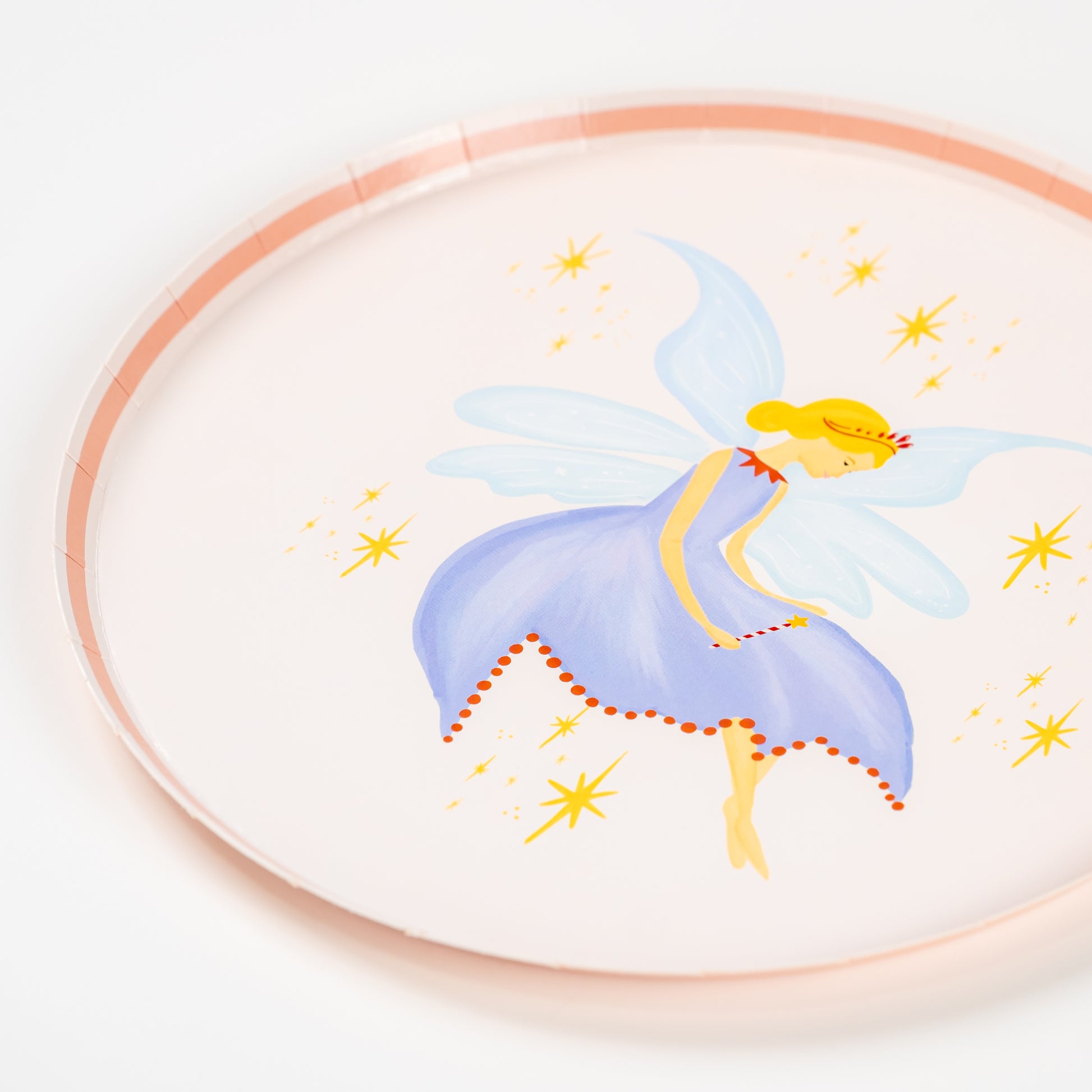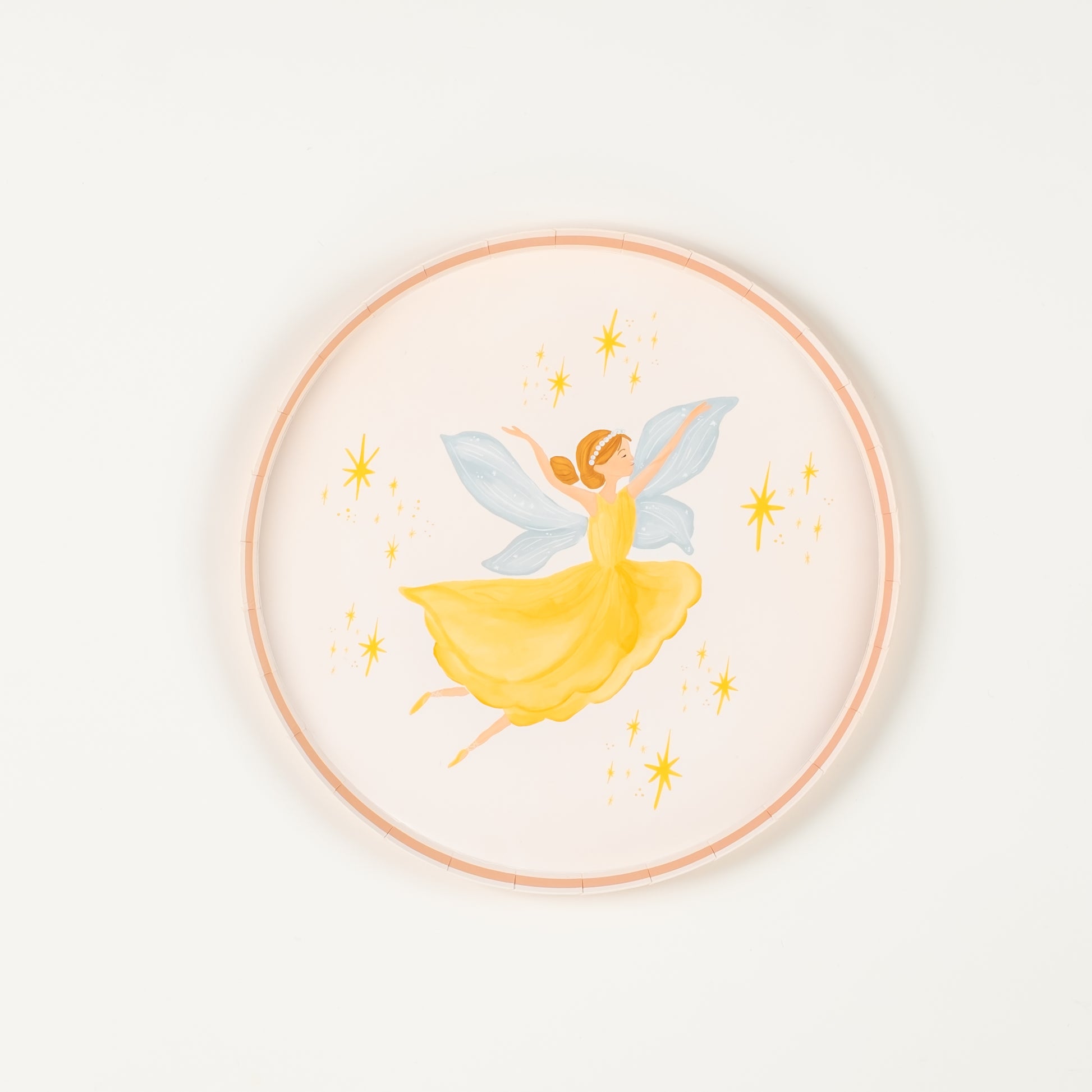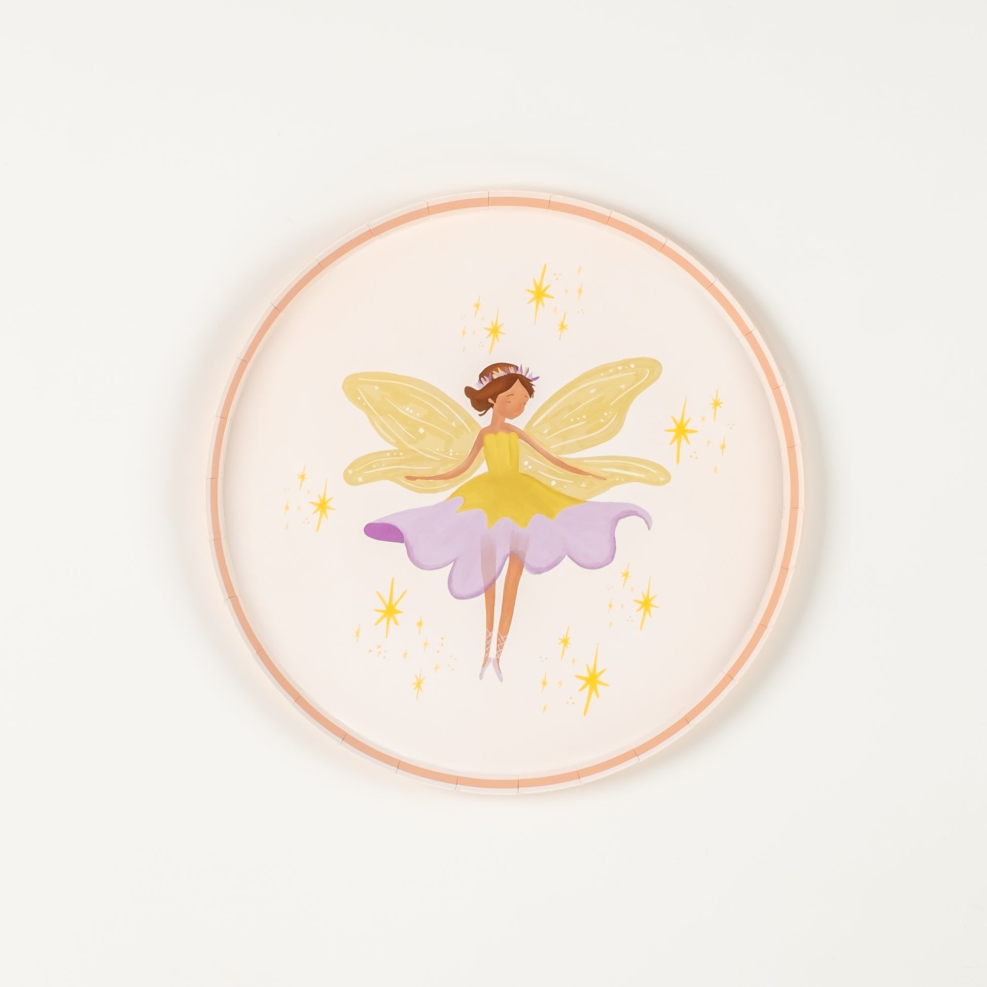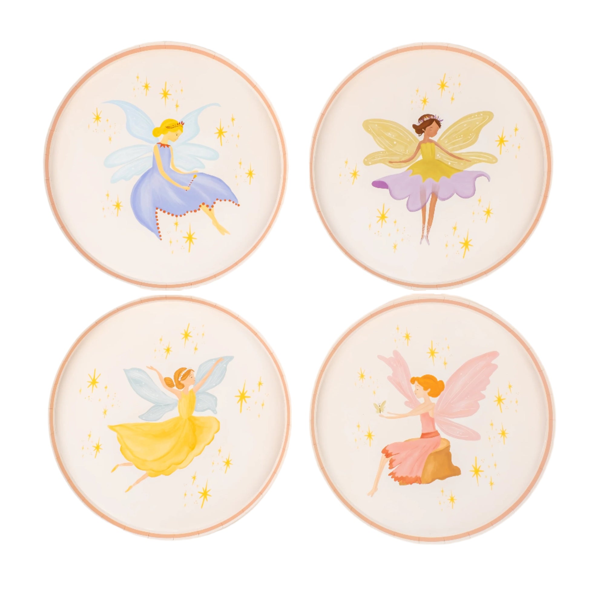 - Set of 8 round small paper plates (4 unique fairy designs, 2 of each)