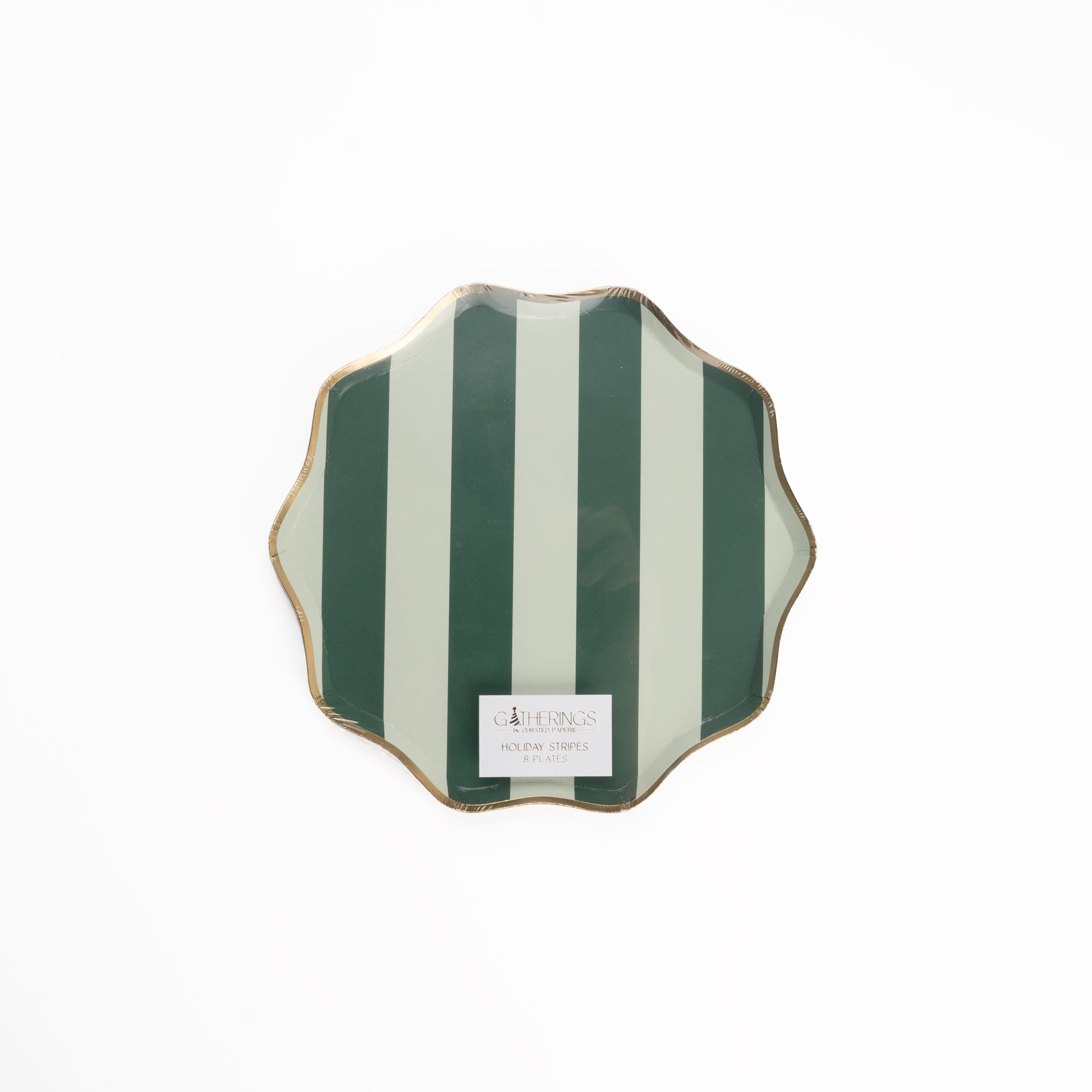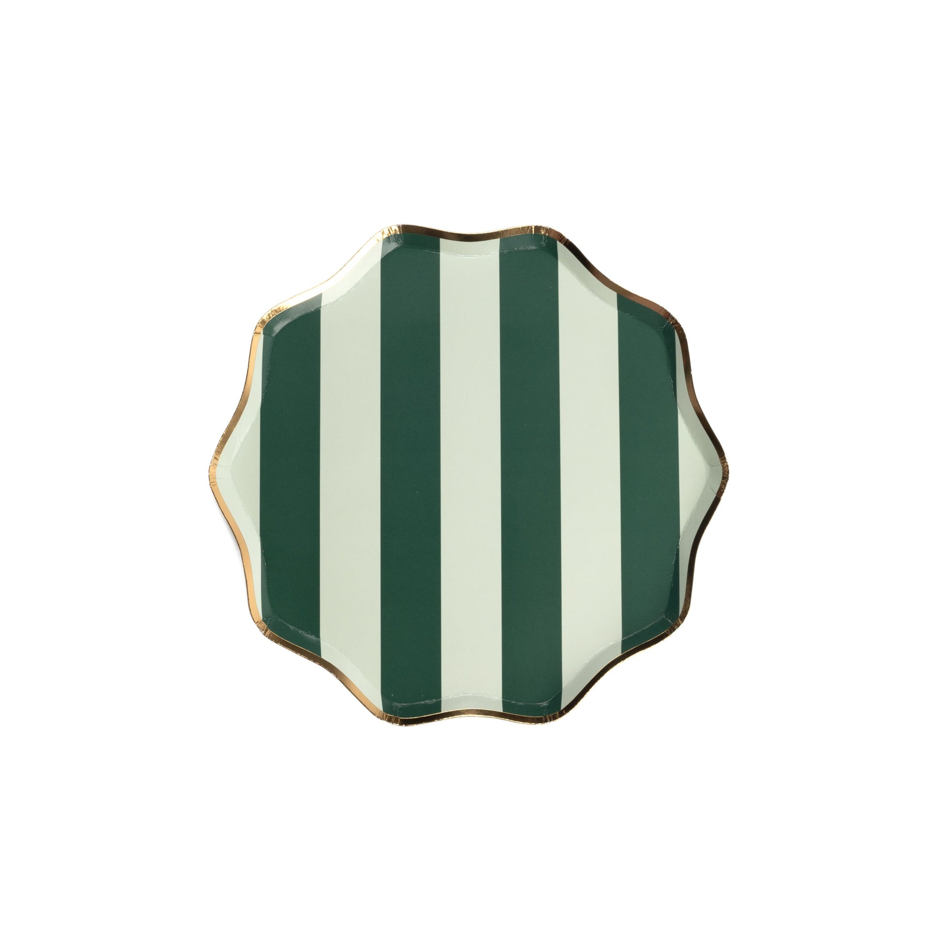HOL24-DP1- Green Holiday Stripes Dessert Plates