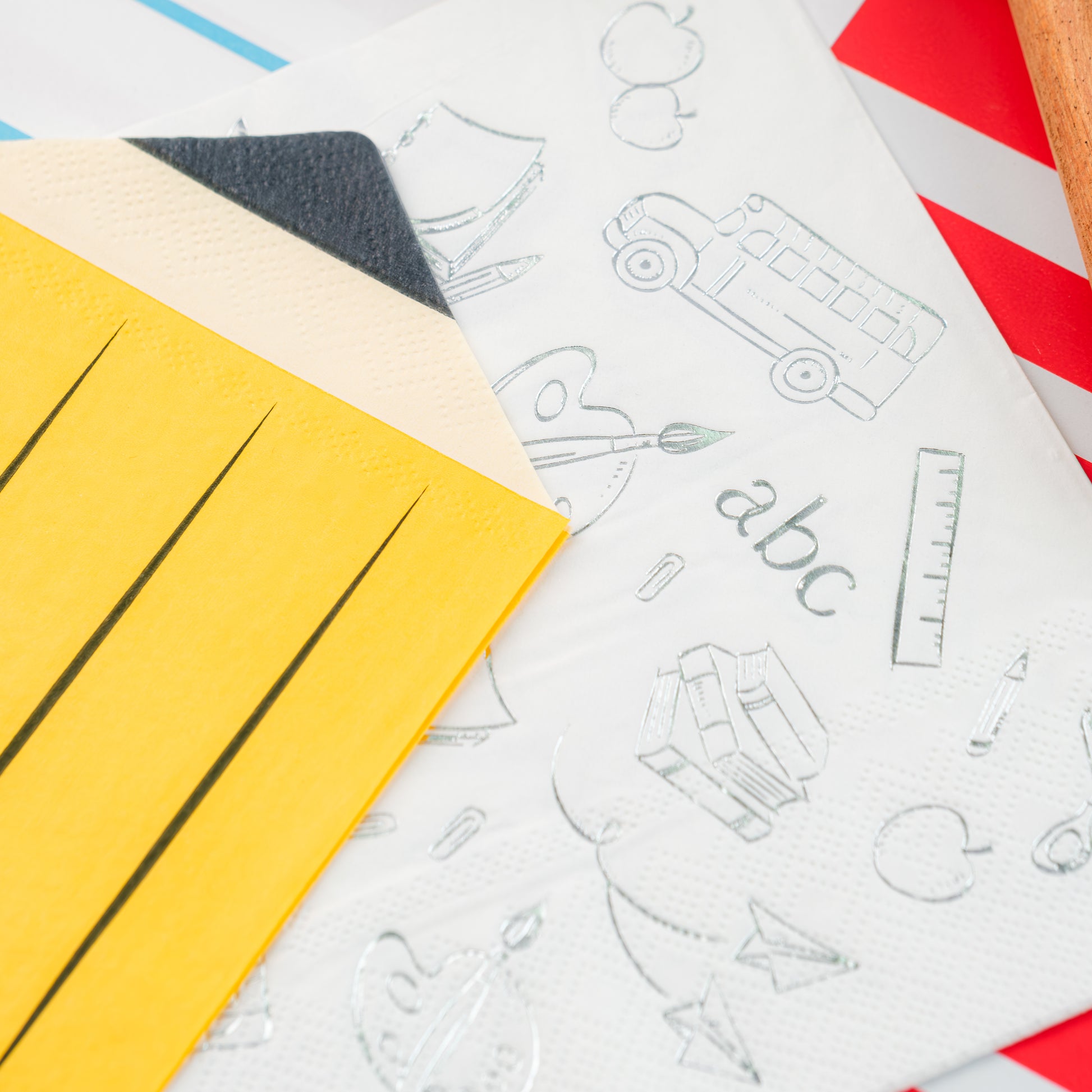 Make lunchtime extra special with School Days Icon Lunch Napkins. The beautiful foil icons add a fun touch to any school gathering or back to school breakfast, creating a memorable experience for kids. Perfect for school parties or events, these napkins are sure to bring a smile to anyone's face. Let's make lunchtime fun!
