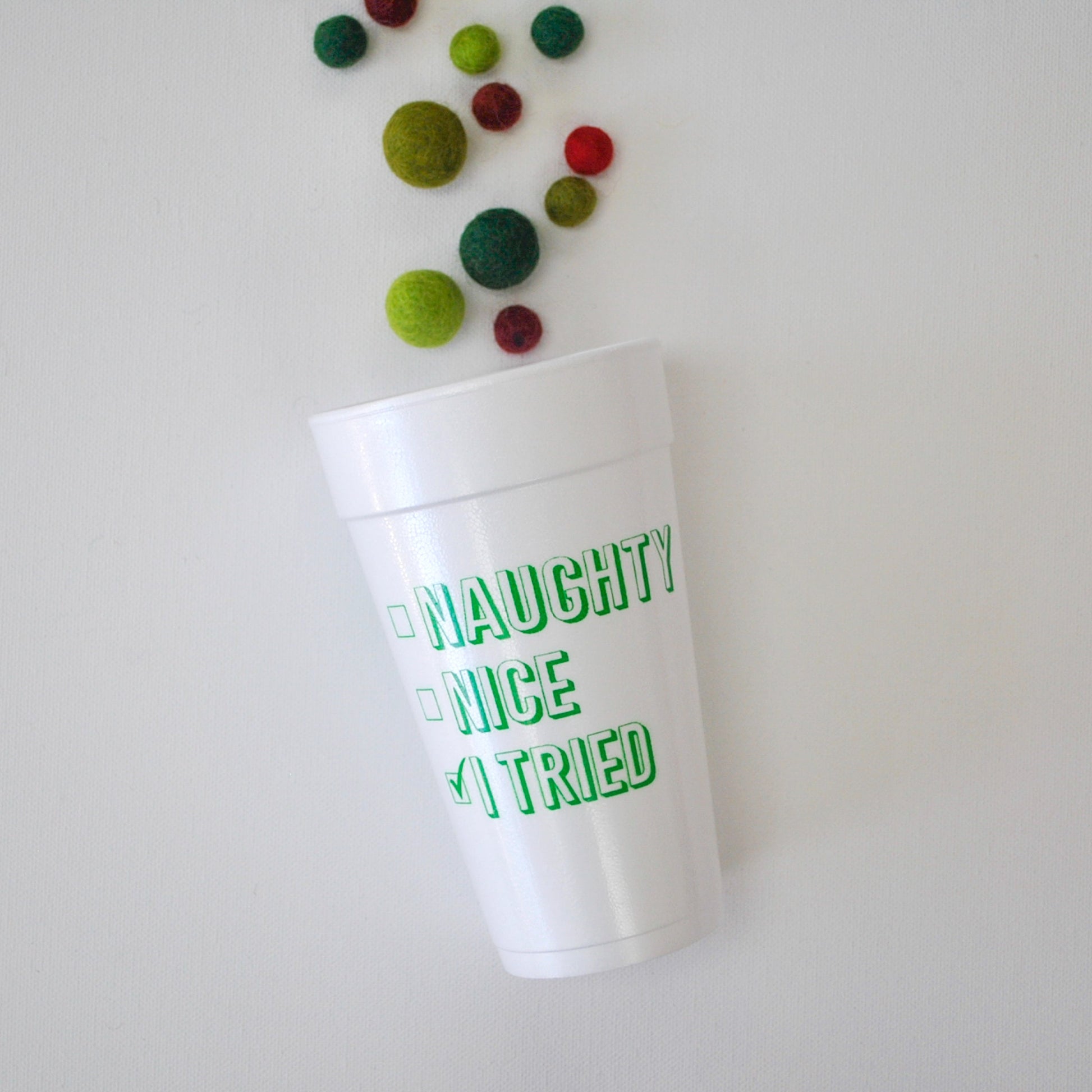 Green Naughty, Nice, I Tried 20oz. Foam Cups | 10 pack