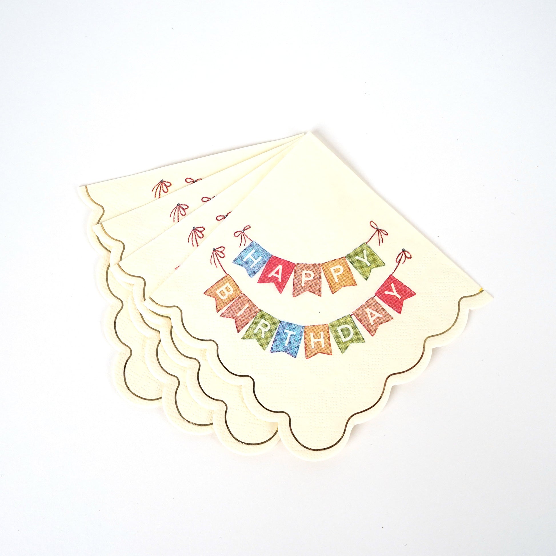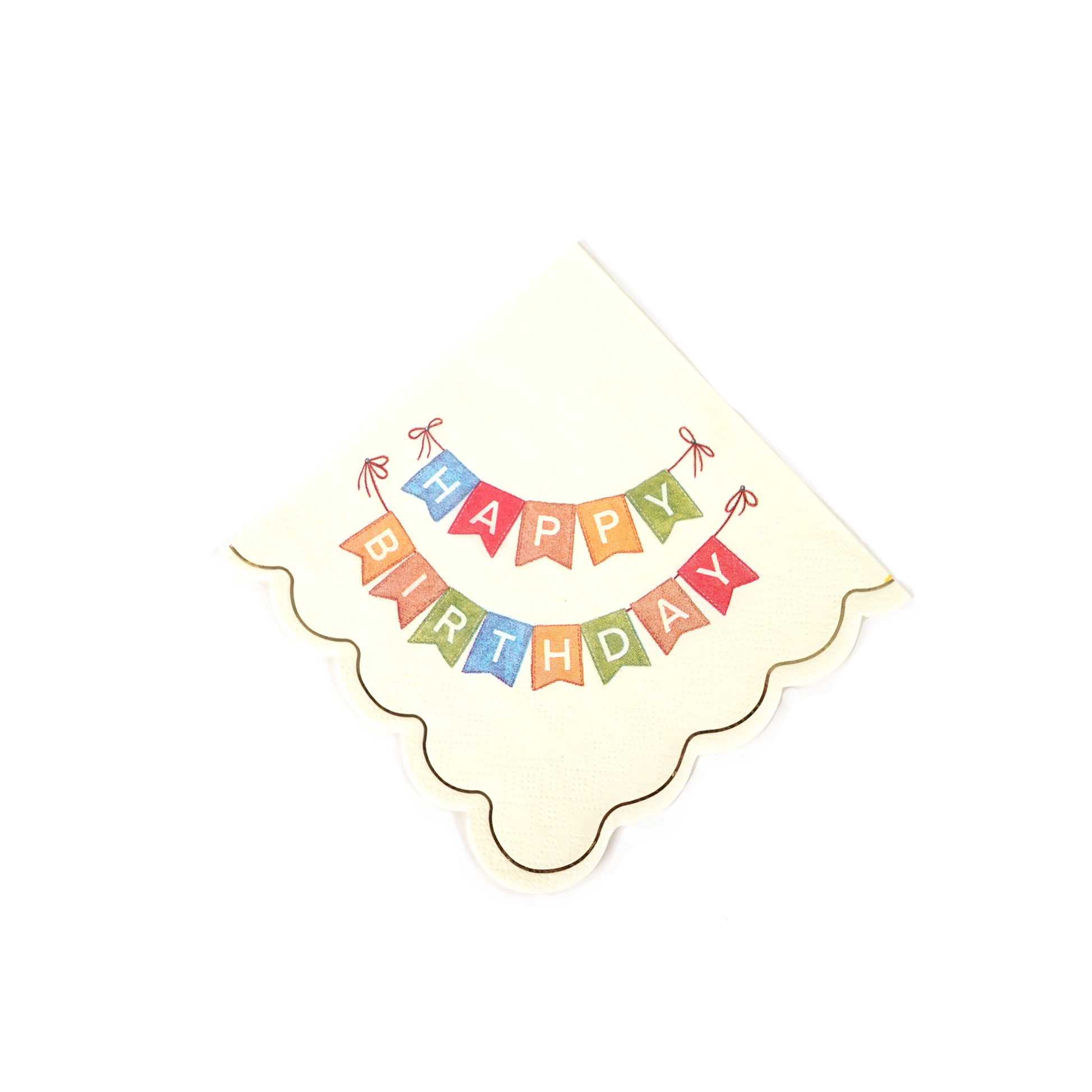 Mark your special day with this beautiful Happy Birthday Garland beverage napkin! The light colors and foil touch create a cheerful atmoshpere, while the scalloped edging adds a touch of elegance. All of your guests will appreciate the eye-catching style of these napkins!