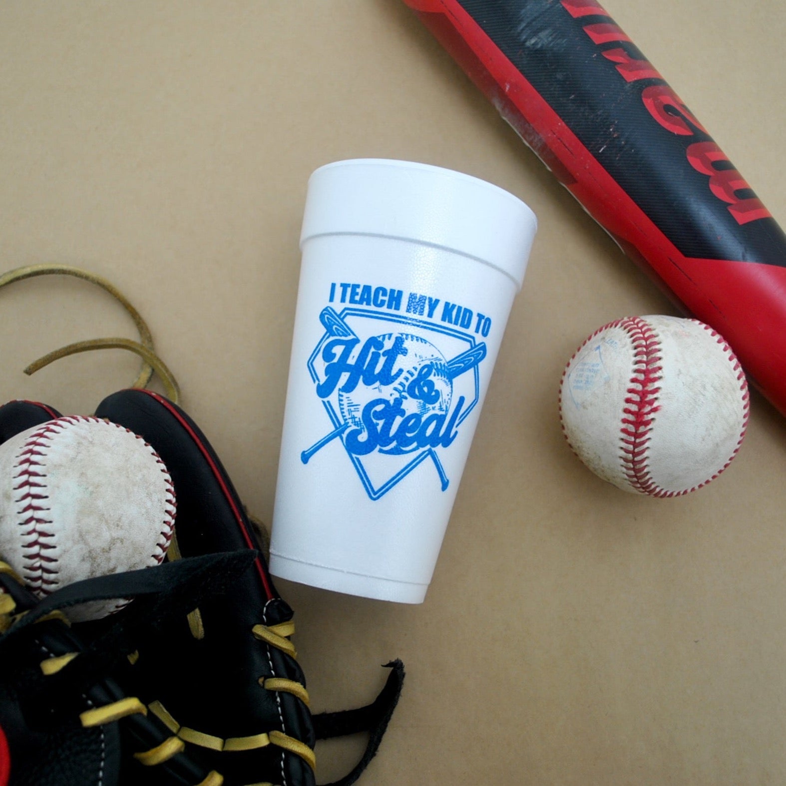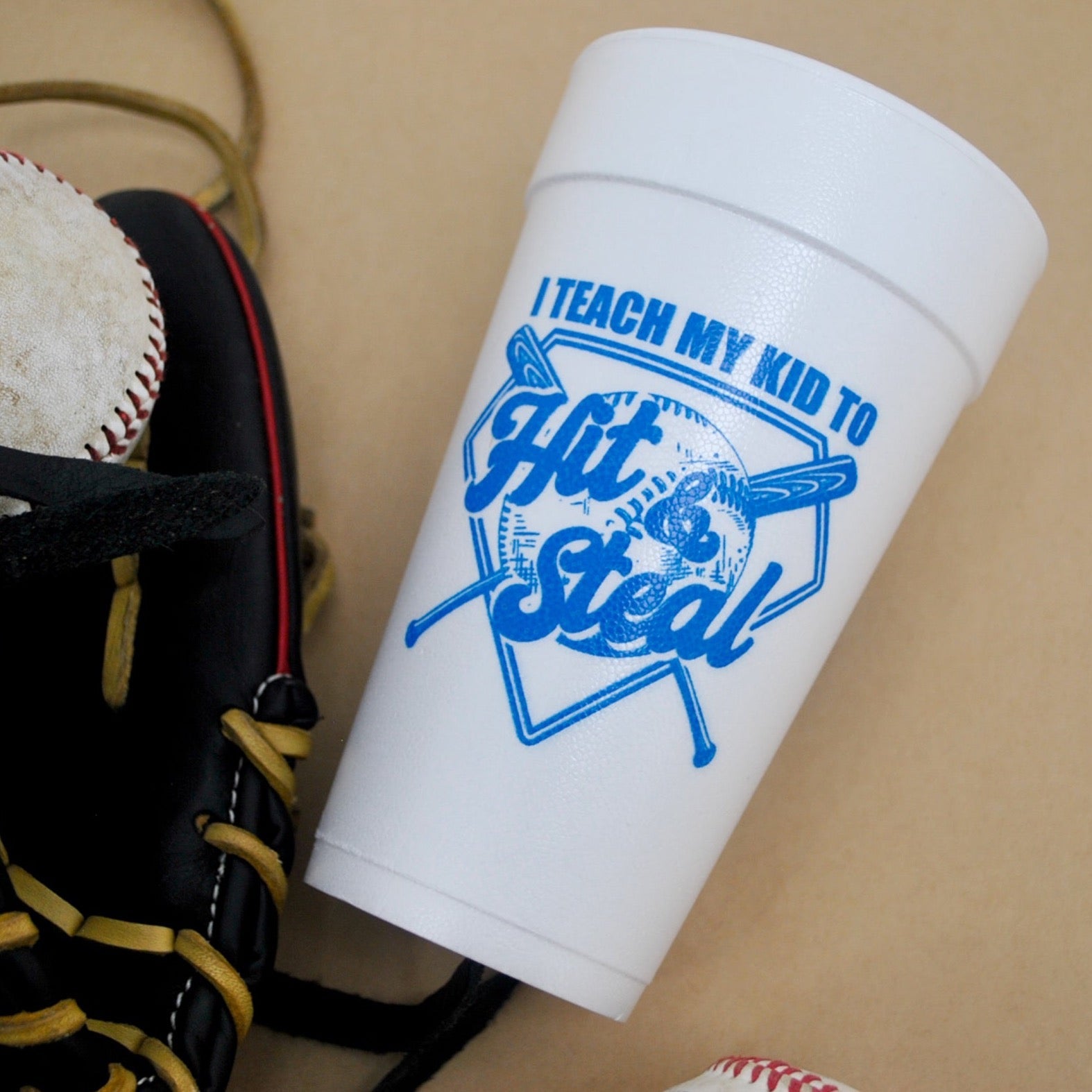 I Teach My Kids to Hit & Steal Baseball 20oz. Foam Cups | 10 pack