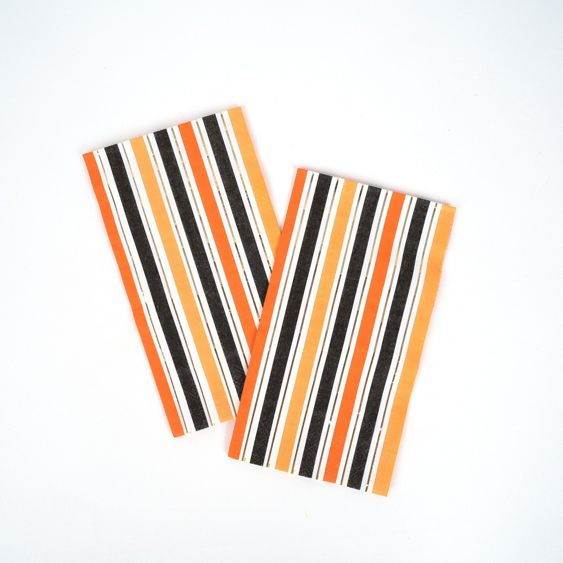 This Orange Multicolor Stripes Guest Towel is perfect for any Halloween event. The stripes feature a unique blend of orange hues and a touch of silver foil for a standout look.