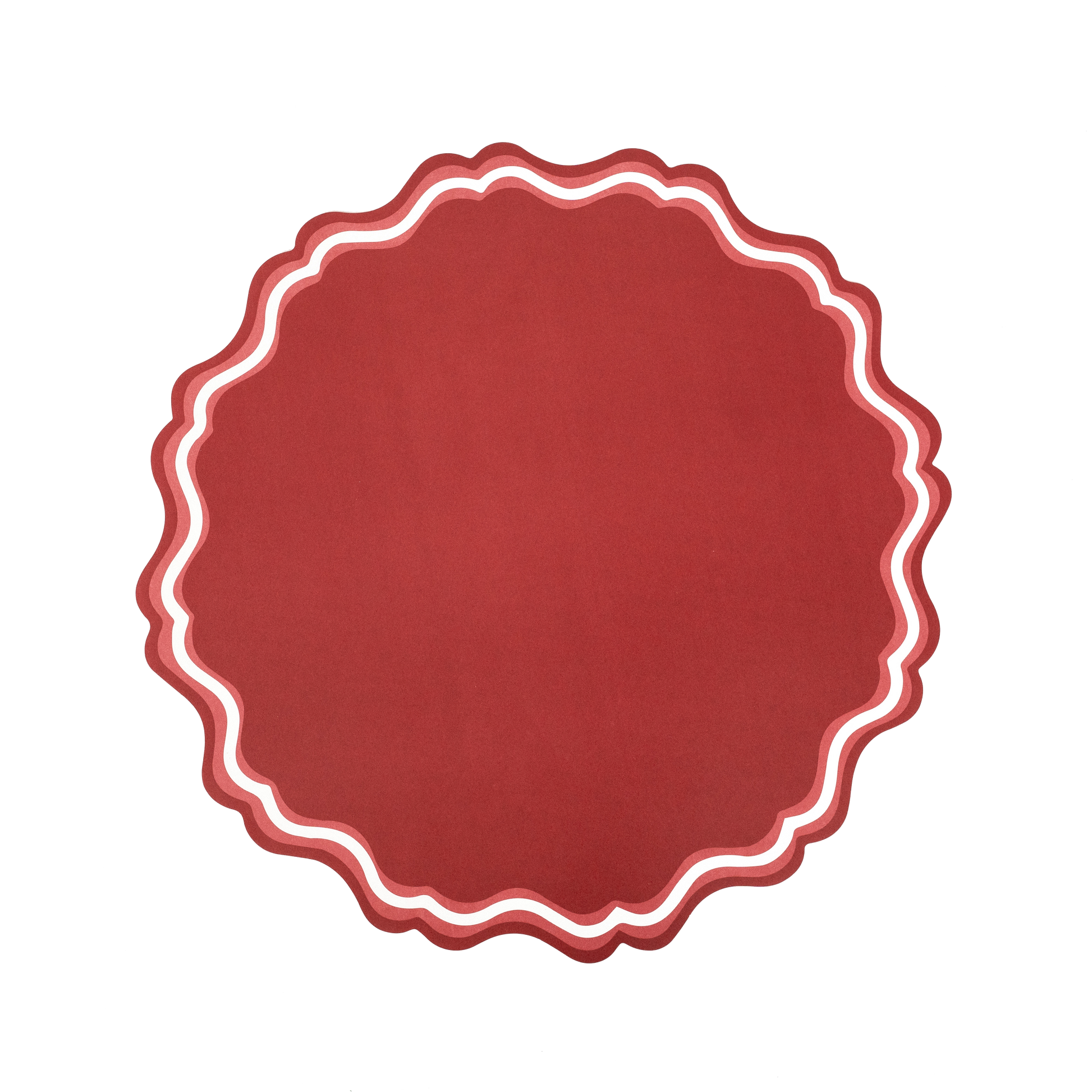 This Red Fancy Scallop Placemat adds a touch of elegance to any table setting. Its unique scalloped shape makes it stand out and provides a sophisticated look while protecting your table surfaces.