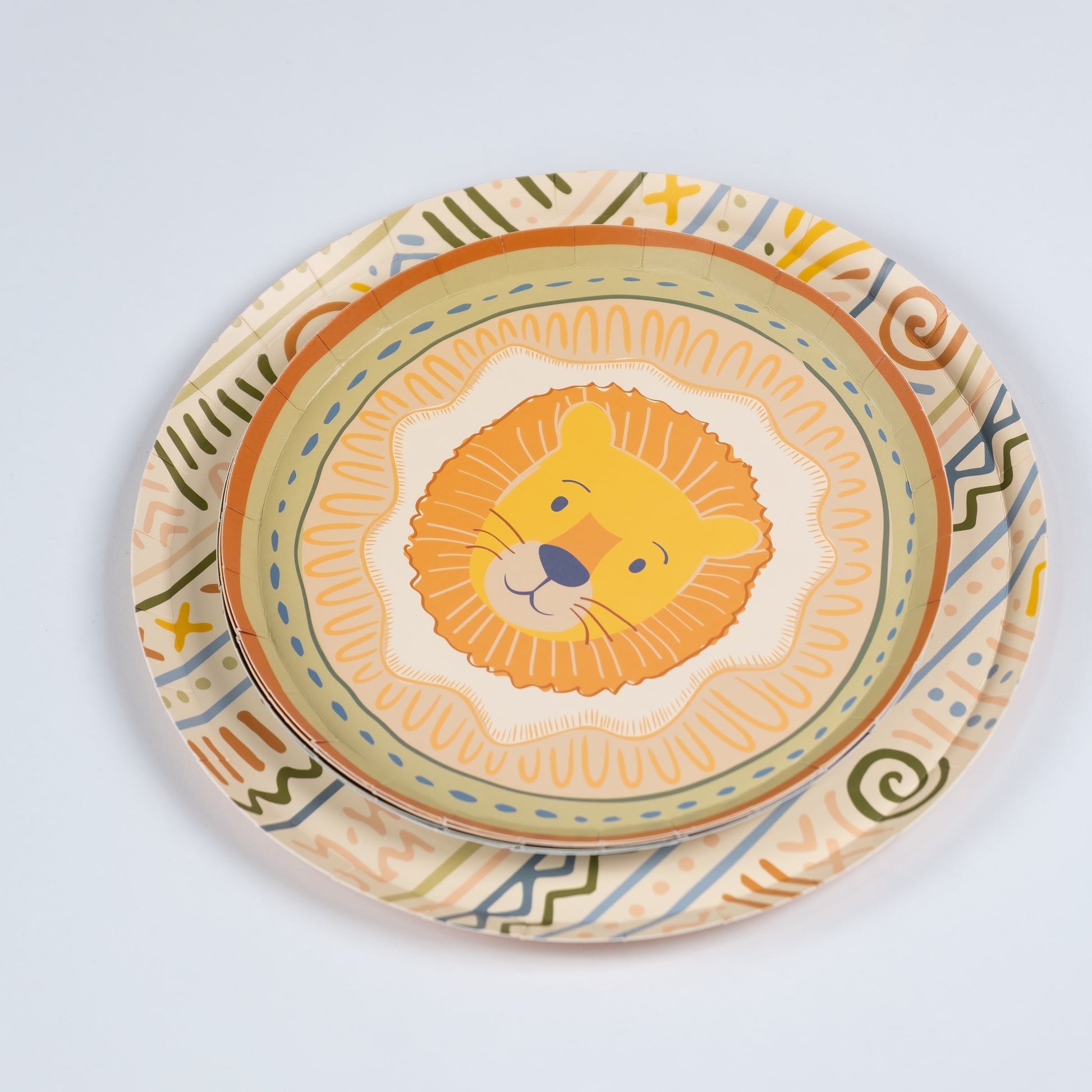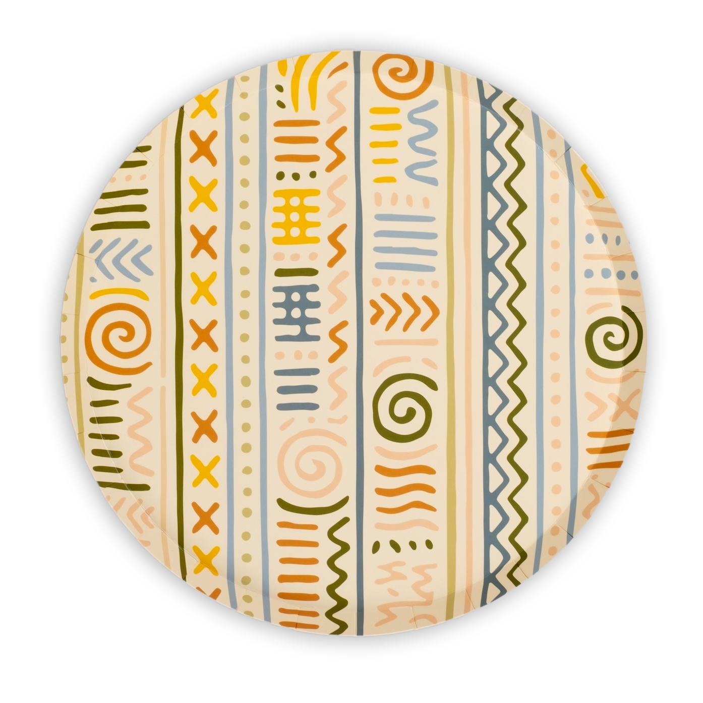 Set the tone for a “roar-some” celebration with our Safari Dinner Plates! Featuring hand-drawn tribal stripes and playful doodle marks in earthy safari hues, olive, clay, sand, and sky blue these premium plates serve burgers, BBQ, and party bites with sturdy, cut-resistant style. The artful pattern layers beautifully with animal prints and jungle greens for an elevated, adventure-ready tablescape.