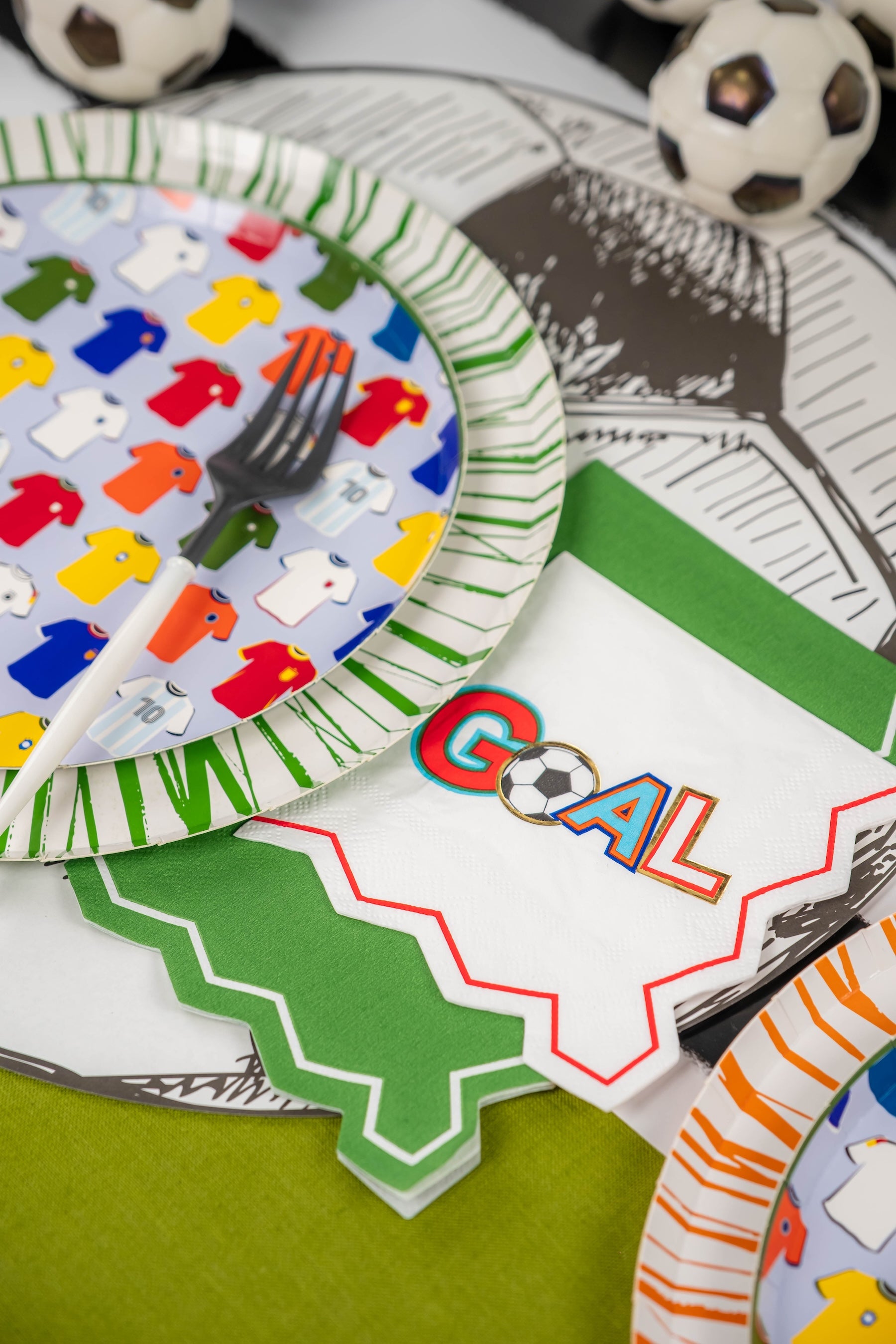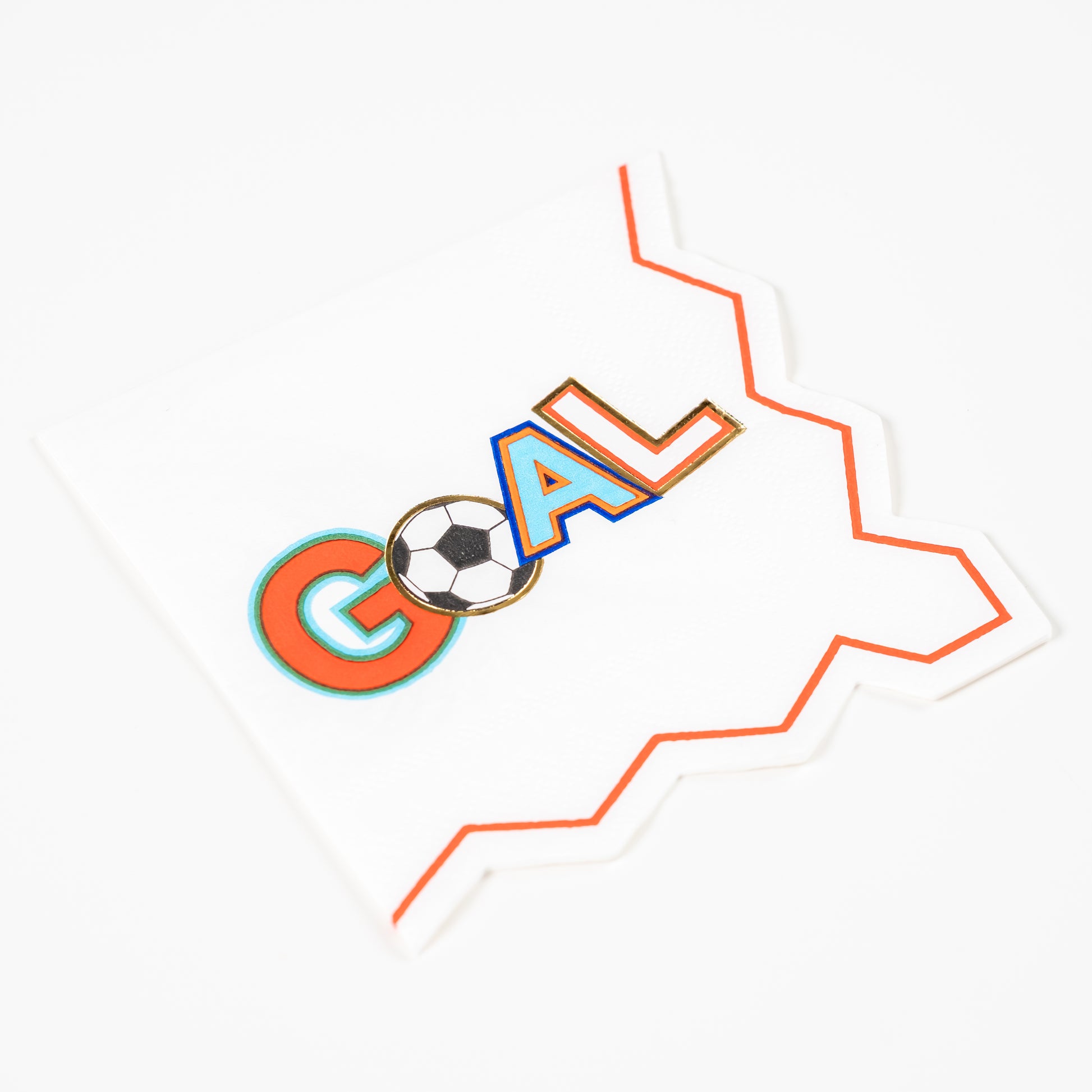Celebrate every big moment—on or off the field—with our Soccer “GOAL” Beverage Napkins! Featuring bold, colorful lettering and a soccer ball “O”, these napkins are made to kick your party up a notch. The jagged zigzag border adds a sporty edge, making them the perfect sidekick for drinks, snacks, and sweet victories at your soccer-themed birthday, team party, or watch event.