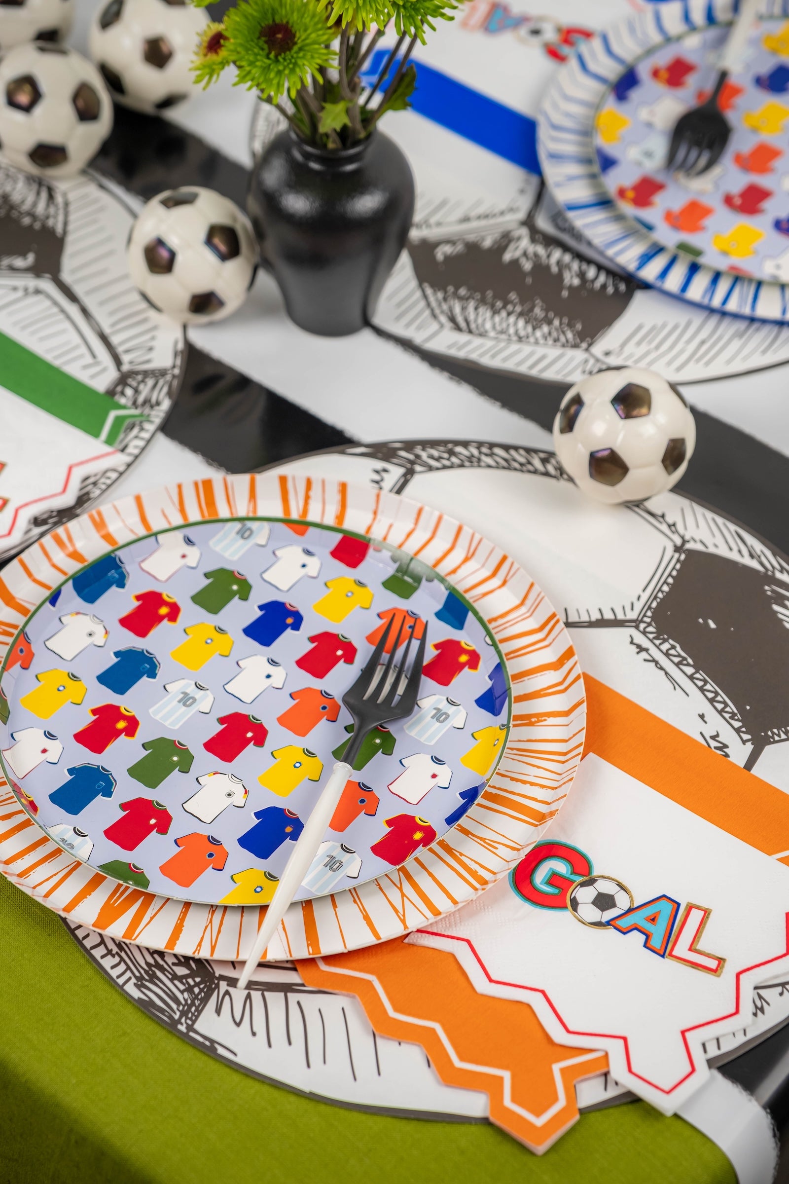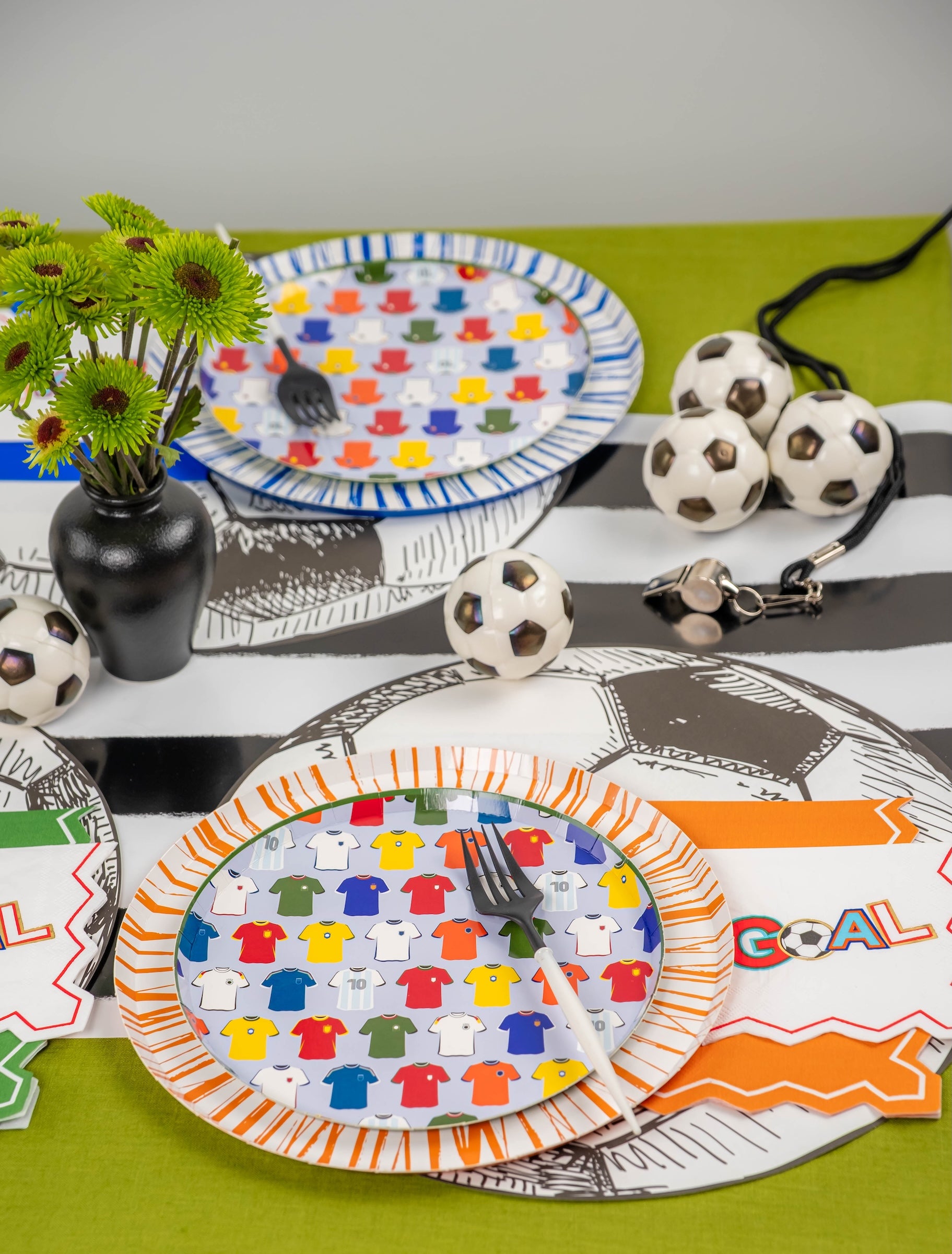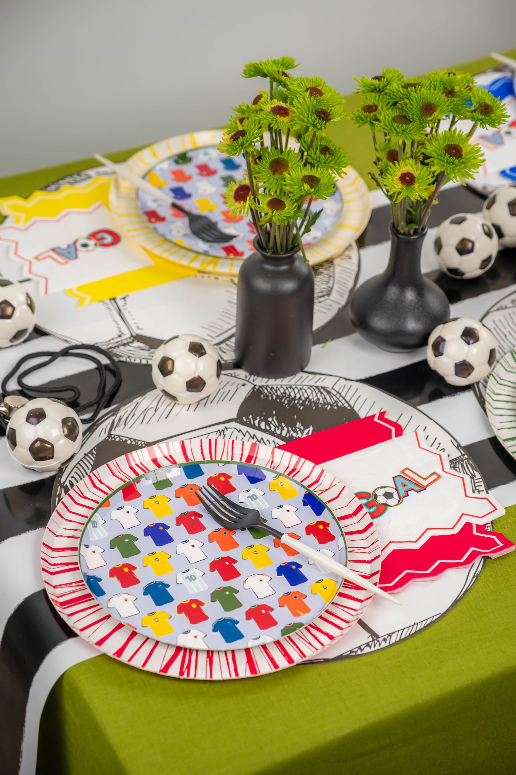 - Sports-themed party tables