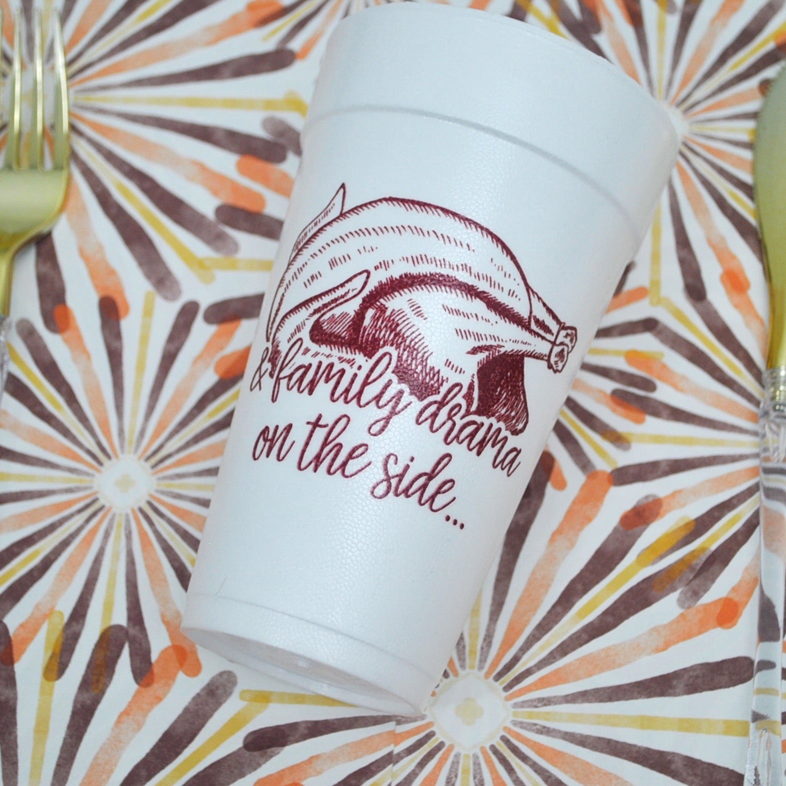 Turkey & Family Drama on the Side Thanksgiving Foam Cups