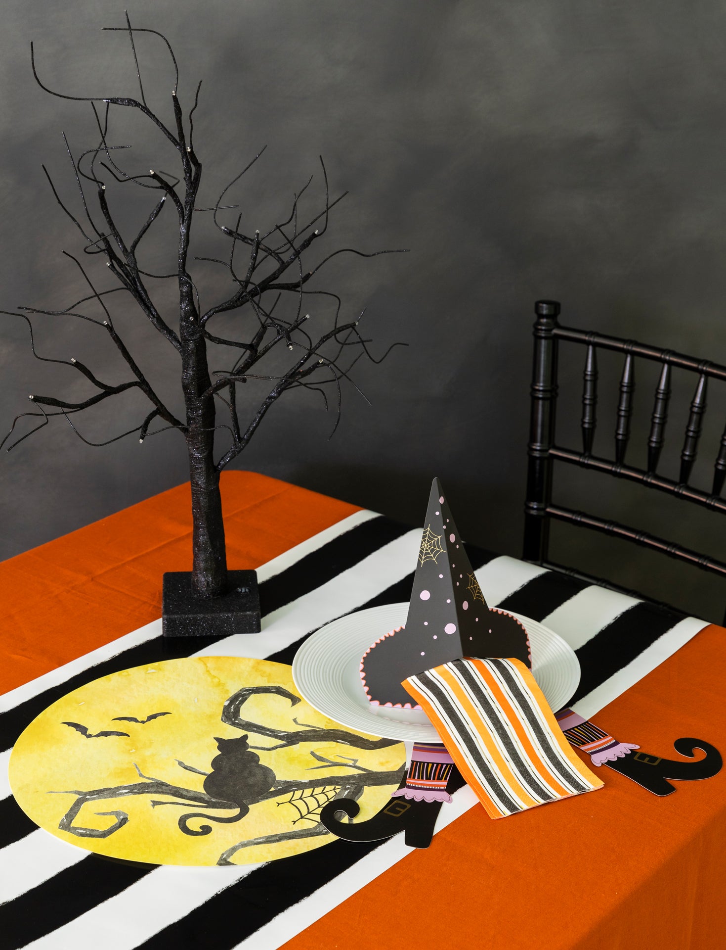 Add a spooky vintage vibe to your next gathering with this striking black and white stripe table runner! Perfect to add to a Halloween feast, or to just add some extra color to a dull event.